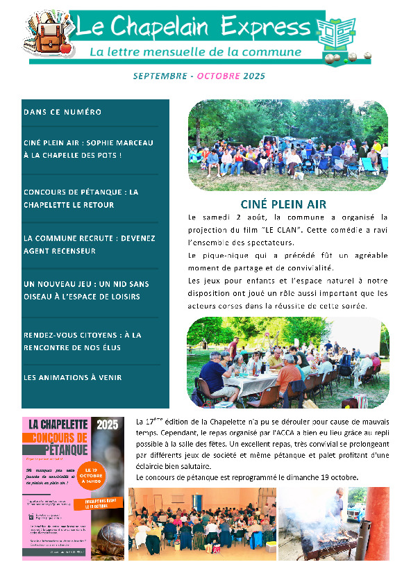 Chapelain express septembre-octobre 2025