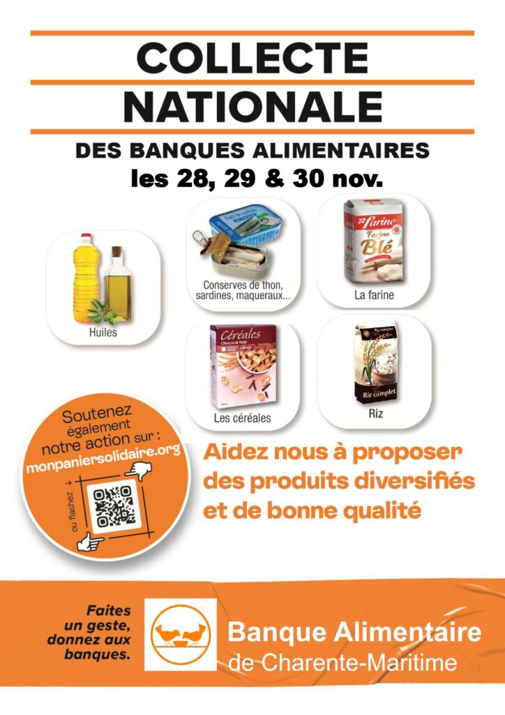 COLLECTE NATIONALE DES BANQUES ALIMENTAIRES LES 28, 29 et 30 novembre.