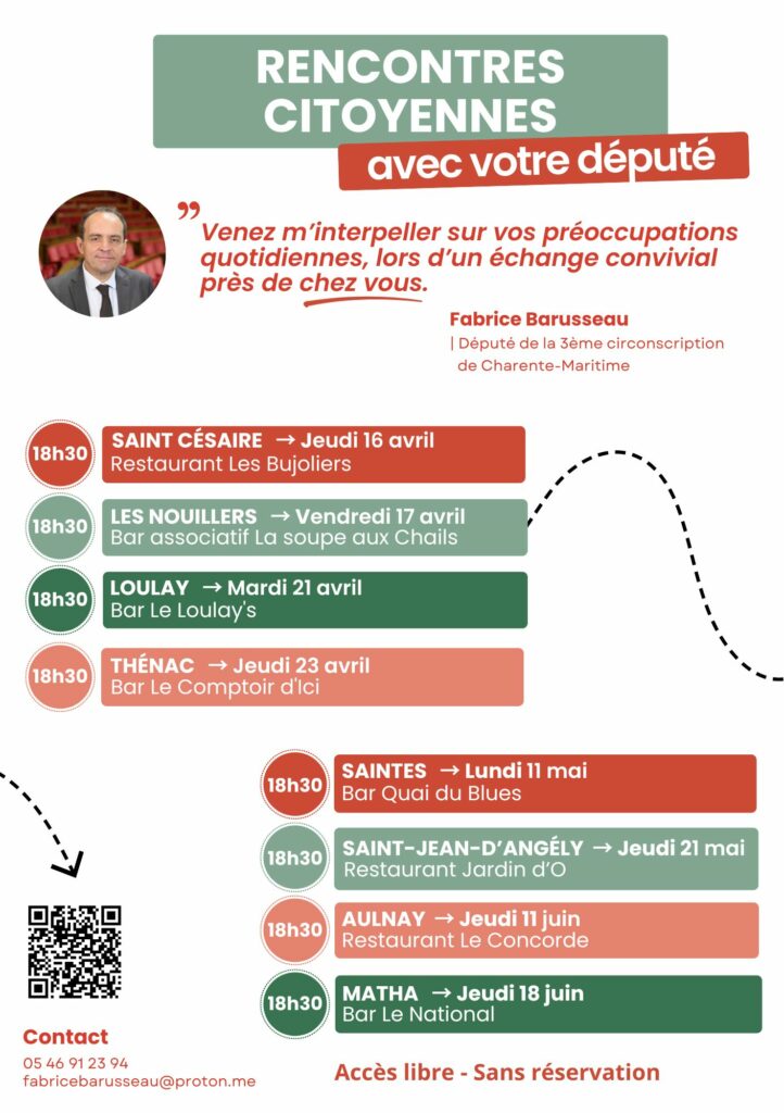 Monsieur le député propose une série de rencontres avec la population de la 3è circonscription et vous invite chaleureusement à y participer.